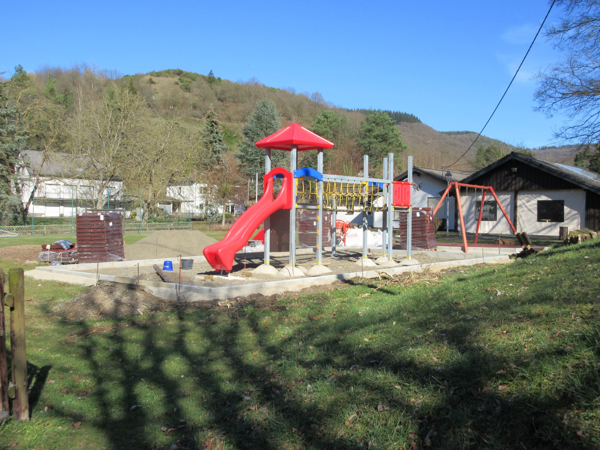 Frisch renoviert warten die neuen Spielgeräte auf ihre "Qualitätsprüfung" durch die Kinder. Die neuen Geräte erste Bewährungsprobe haben sie bereits zur Herschbacher Kirmes 2019 überstanden und wurden für "super" befunden. Von dem schönen, großzügigen Spielplatz profitieren auch die Mieter des Bürgerhauses, die diesen nutzen dürfen und ihre Kinder dort unbesorgt spielen lassen können.